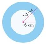如下图所示的圆环铁片,中间是空心的,已知圆环外圆的半径是r1厘米(如:10cm),内圆半径是r2厘米(如:6cm),请编程计算该铁片的面积。(外圆面积 – 内圆面积,假设π=3.14,结果保留2位小数)