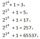 而 3、5、17、257、65537 都是质数,于是费马猜想:对于一切自然数 n ,22n +1 都是质数,可是到了 1732 年,数学家欧拉发现一个数 n 并不满足费马的这个猜想,请问欧拉发现的这个数 n 最小是多少?(在 long long 的范围内)( 7.2 )
