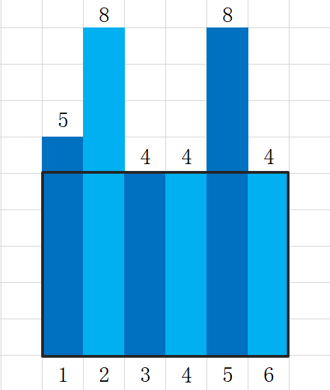 afy 决定在上面找一块尽可能大的矩形放置广告牌。我们假设每个建筑物都有一个高度,从左到右给出每个建筑物的高度H_1,H_2,\dots,H_N,且 0 < H_i ≤ 10^9,并且我们假设每个建筑物的宽度均为 1 。