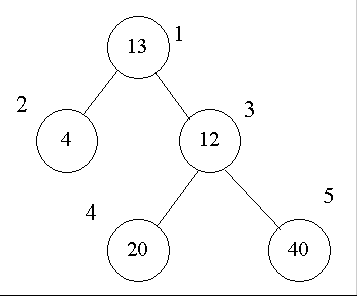 设有一棵二叉树(如图,其中圈中的数字表示结点中居民的人口,圈边上数字表示结点编号。
