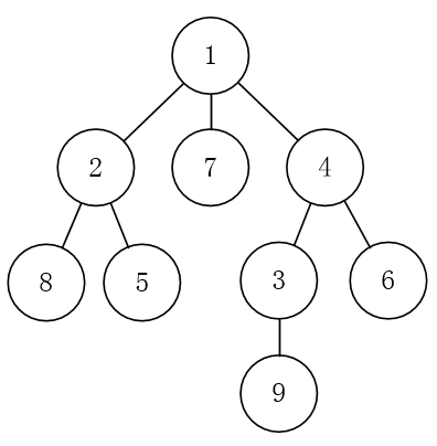 接下来 n-1 行,每行读入两个整数 x 和 y ,表示结点 x 和 y 之间有一条边(注意:不确定 x 和 y 的父子关系)。