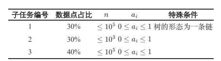 第二行包含 n 个非负整数 a_1,a_2,...,a_n(对于所有的 1 \le i \le n ,均有 a_i 等于 0 或 1),其中如果 a_i=0,则节点 i 的颜色为白色;如果 a_i=1 ,则节点 i 的颜色为黑色。