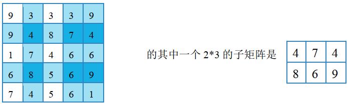 1.子矩阵:从一个矩阵当中选取某些行和某些列交叉位置所组成的新矩阵(保持行与列的相对顺序)被称为原矩阵的一个子矩阵。