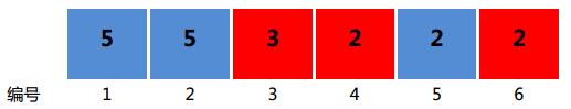 第三行有n用空格隔开的正整数,第i数字colori表纸带上编号为i格子染的颜色。